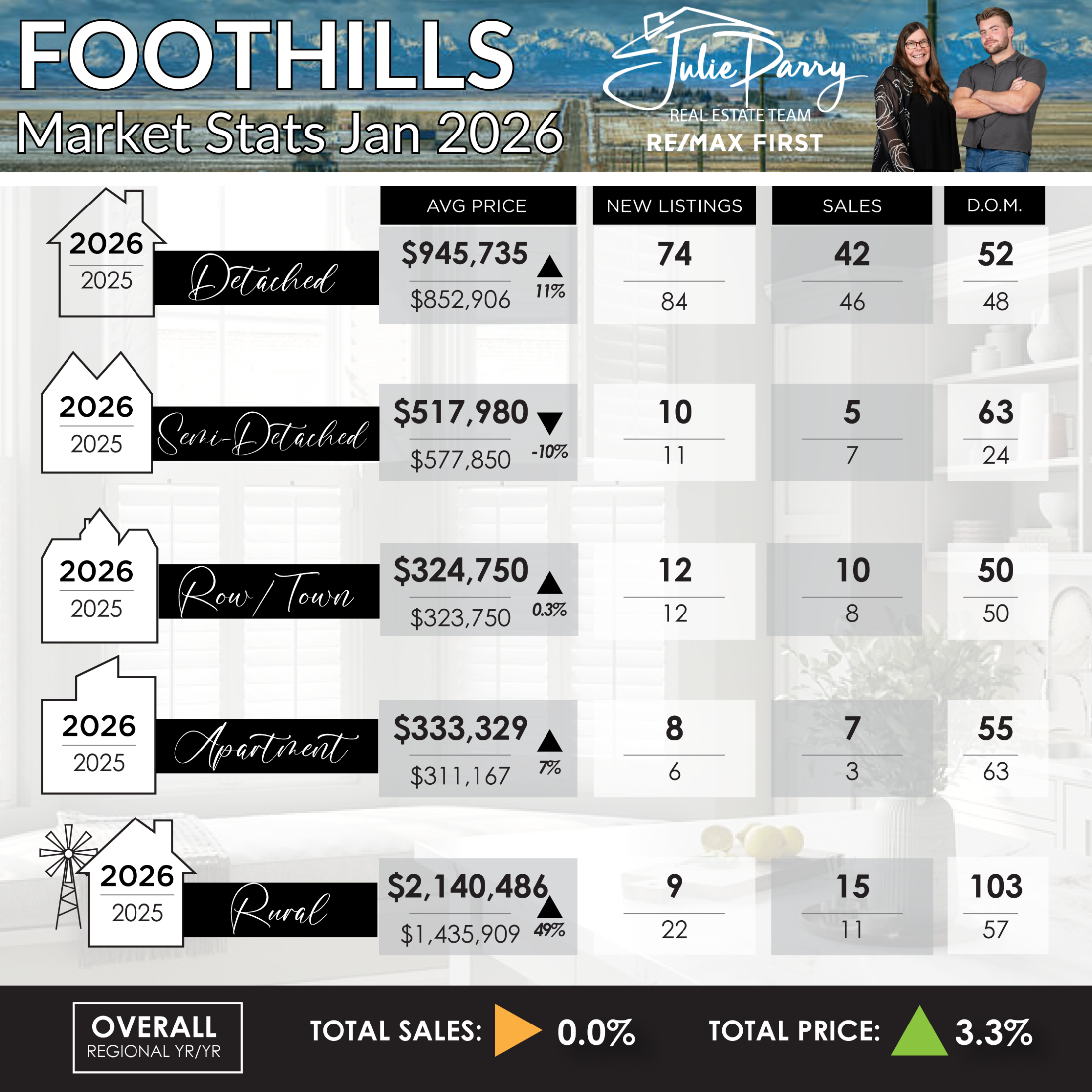 Here are the market statistics for December 2025. Please don’t ever hesitate to call us if you ever have any questions on the market in your area.